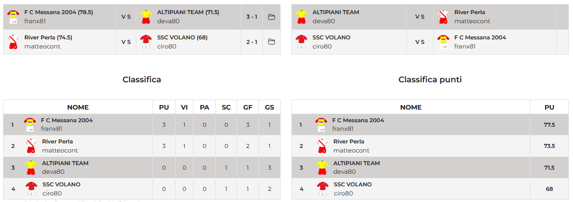 Risultati 6^Giornata e Prossimo Turno - FantaCampionato