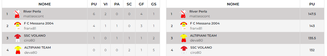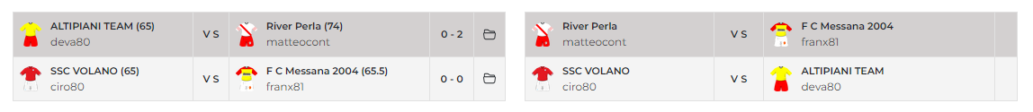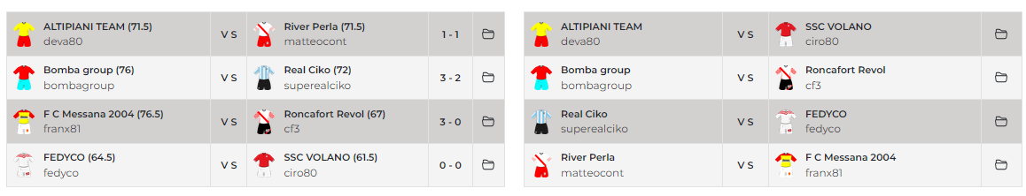 Risultati 2^Giornata e Prossimo Turno GIRONE A - FantaCoppa