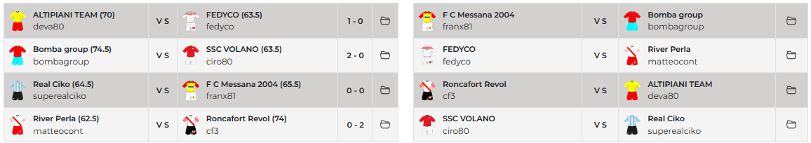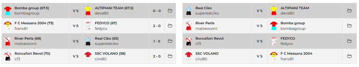 Risultati 1^Giornata e Prossimo Turno GIRONE A - FantaCoppa