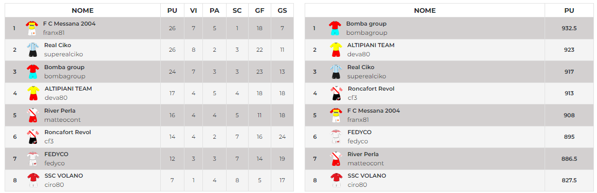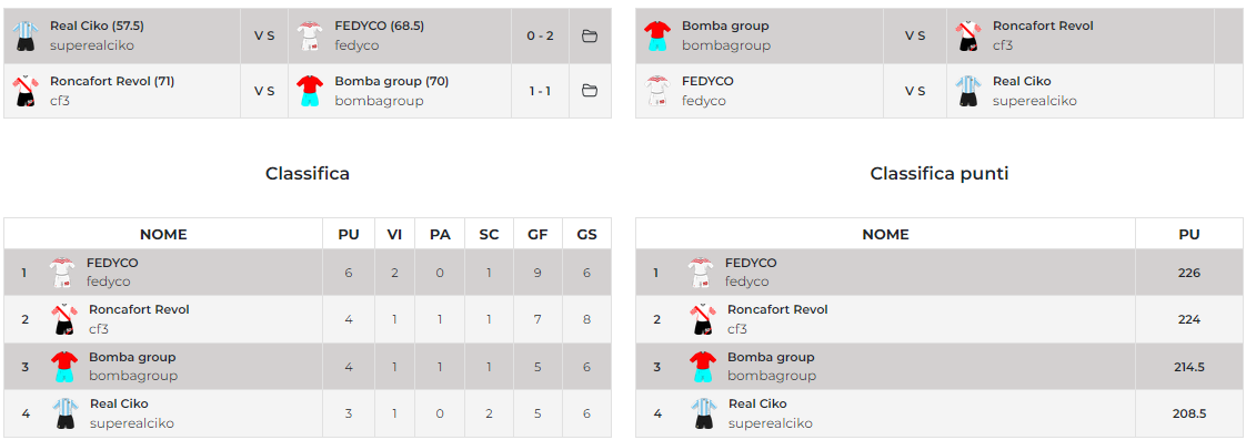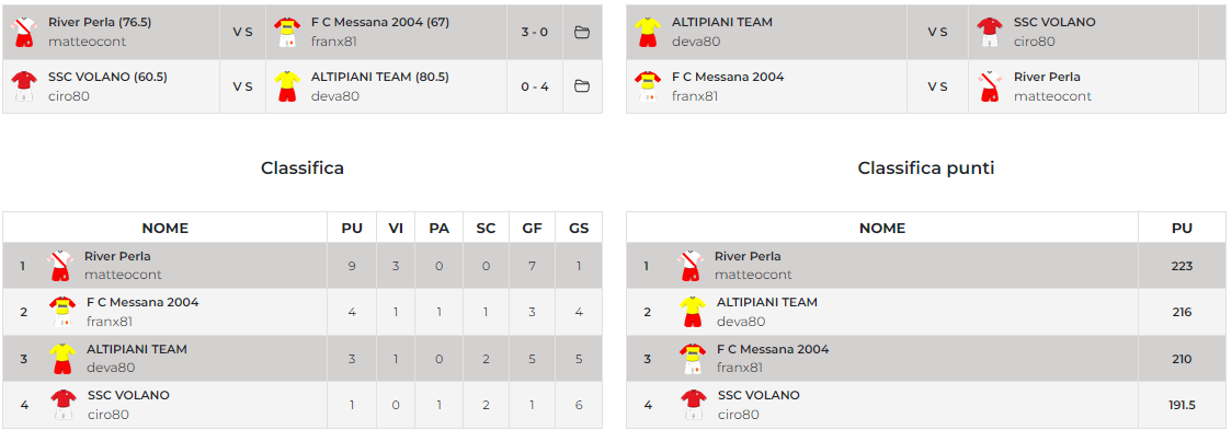 Risultati 3^Giornata, Classifica e Prossimo Turno GIRONE A - FantaCoppa